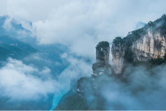 贵州沿河黎芝峡以峡江山水著称,奇峰对峙,江流蜿蜒,晴天可见“黎芝光”五彩奇观,峡中遍布古纤道、剑劈岩等自然石刻,舟行如画。毗邻的霸王谷山势雄峻,层峦叠嶂,云海霞光交织,共绘壮丽山水长卷。通过串联两地核心资源,酉沿段被重新定义为乌江百里画廊的“正统核心”,凸显其作为渝黔文旅纽带的不可替代性。